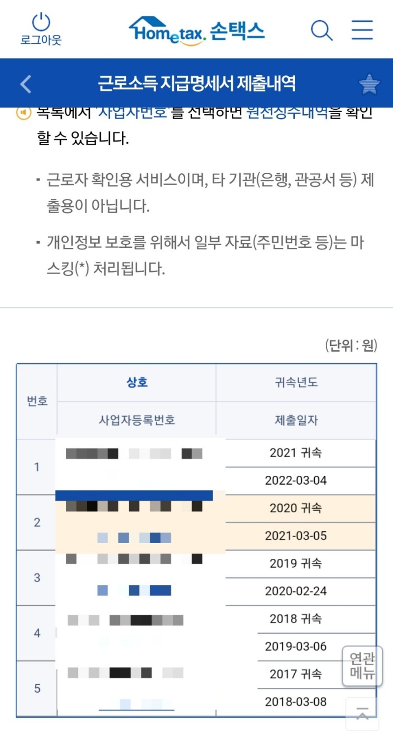 저는 받은 게 없다고요? 아마 대부분 급여랑 포함해서 환급이 되기 때문에 근로소득원천징수영수증을 발급받아야 확인할 수 있습니다.